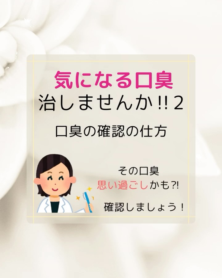 富山県射水市の歯医者、大谷歯科医院です。 「気になる口臭 治しませんか‼」のご紹介です。 第2回目は「口臭の確認の仕方」です。 ・本当に口臭がするのか ・どの程度の口臭なのか 確認しましょう。 お悩み事、気になる事などお気軽にご相談ください。 https://dent-ohtani.jp/ 大谷歯科医院 富山県射水市戸破750-1 0766-56-3883 #大谷歯科医院#射水市歯医者#射水市歯科医院#富山県歯医者#富山県歯科医院#google
